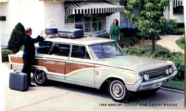 Funny that with all that interior space, the guy in the suit (yes, they dressed up to go on a trip in the '60's) looks like he's putting stuff on the roof. Maybe they are moving and the furniture is in the back?