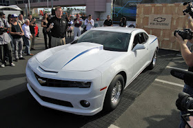 Back in the heyday of these Super/Stock (S/S) factory race cars, Chevrolet was quietly putting together special 427 Camaros, called COPO's (Central Office Production Order) and selling them to acknowledged performance dealerships. Recently Chev unveiled a drag race special Camaro ZL-1(above), which like its Mustang and Challenger counterparts will be sold "strip" ready.